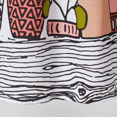 - Features cacti and other desert succulent prints in vibrant hues of orange, yellow and blue